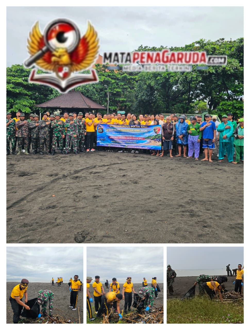 Sinergitas Ditkrimsus Polda Bali, TNI, Polsek Dentim, Inkait dan Masyarakat Bersihkan Pantai Biaung, Wujud Kepedulian Lingkungan