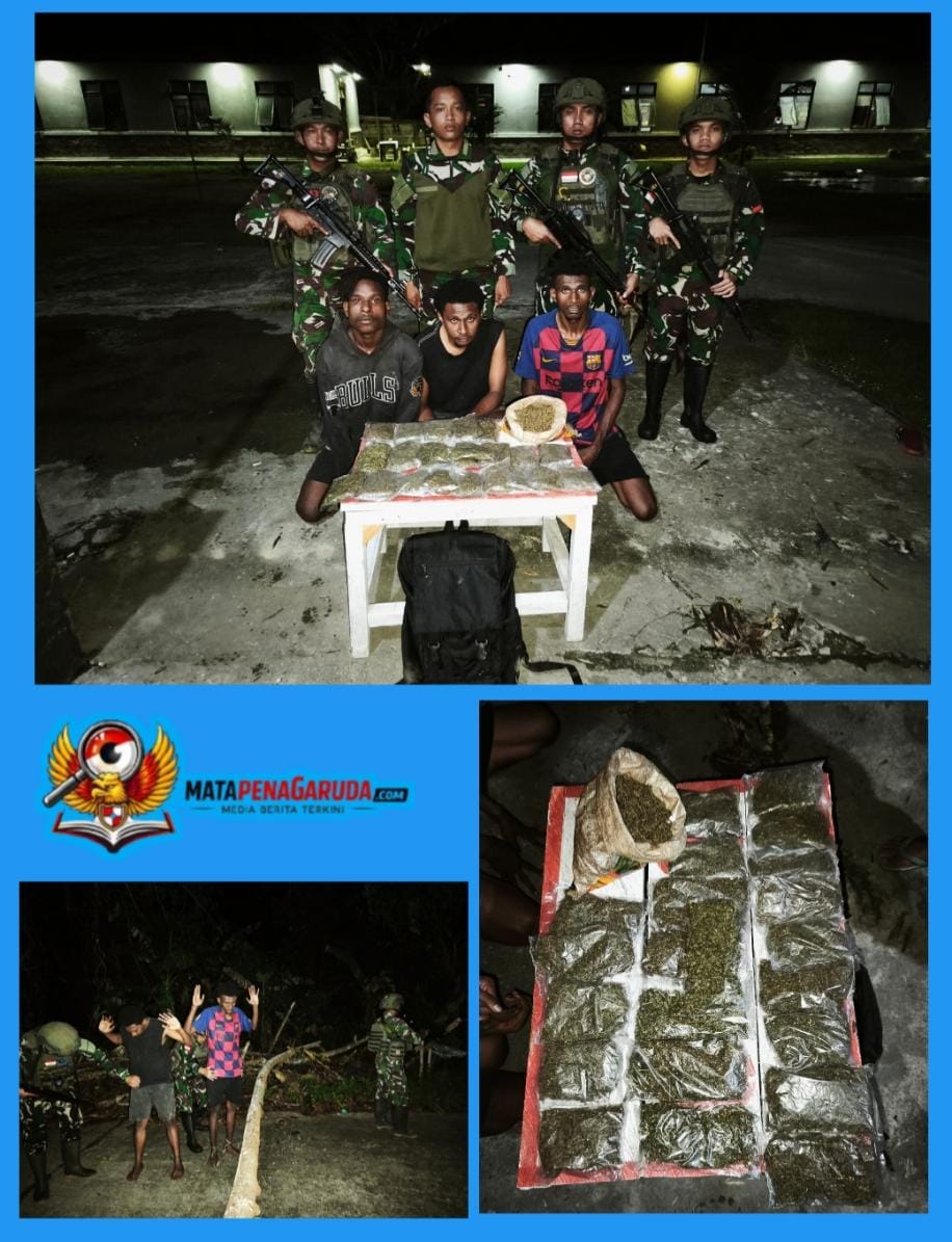 Torehkan Prestasi Kembali, Satgas Yonif 643/Wns Gagalkan Peredaran Narkotika di Perbatasan Papua