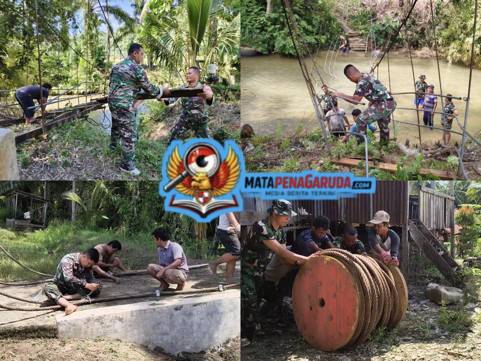 Kodim 0212/TS Bersama Warga Mulai Bangun Jembatan Gantung di Padang Bolak Julu