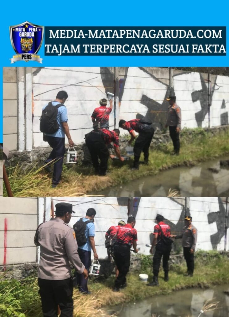 Kapolsek Dentim Kompol I Ketut Tomiyasa, S.H., M.H., bersama Kanit Binmas AKP I Nyoman Sujana, S.H., dan Kanit Intelkam Iptu I Nyoman Hendra beserta anggota Polsek Dentim turun langsung melakukan pembersihan dengan mengecat ulang tembok yang tercoret.