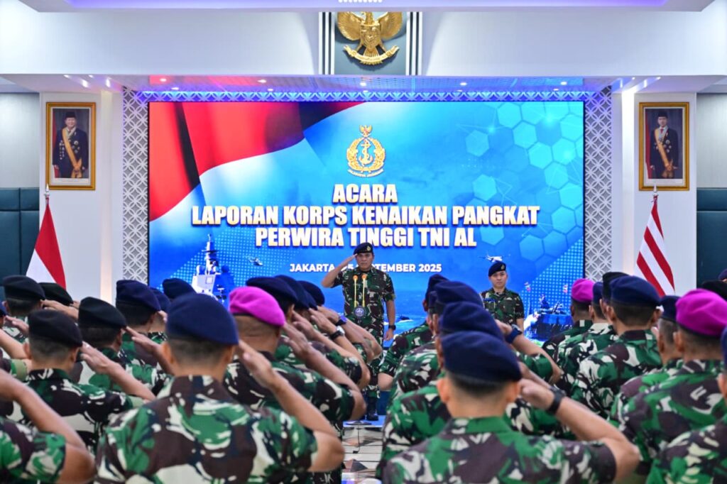[ JAKARTA ] – Sebanyak 67 Perwira Tinggi (Pati) TNI AL melaksanakan Laporan Korps Kenaikan Pangkat Pati kepada Kepala Staf Angkatan Laut (Kasal) Laksamana TNI Dr. Muhammad Ali bertempat di Wisma Elang Laut, Jakarta Pusat, Kamis (25/9).