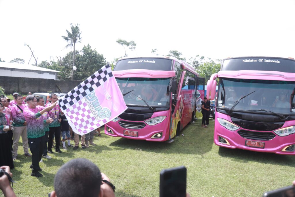 Di teruskan Sambutan disaat Pelepasan bus buat anak-anak sekolah, bersama ketua TP PKK kabupaten jember neng gita dan seluruh jajaran pemerintah kabupaten jember pesta kampung ini semangatnya adalah supaya yang merasakan acara acara di jember masyarakat kota dan di polosok desa pati ini, jadi dikota boleh menikmati acara masyarakat di desa juga bisa menikmati, saya pingin masyarakat kota tersenyum di desa juga tersenyum ini adalah pemerataan ,juga ini ada dua bus yang warnah pink namanya sicinta di luncurkan hari ini untuk melayani anak-anak kita sekolah nanti yang beberapa sekolah yang tidak ada bus maka akan dilayani oleh bus ini,