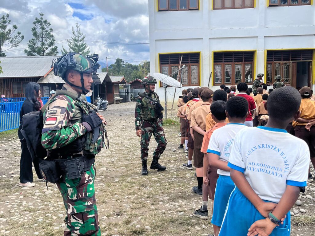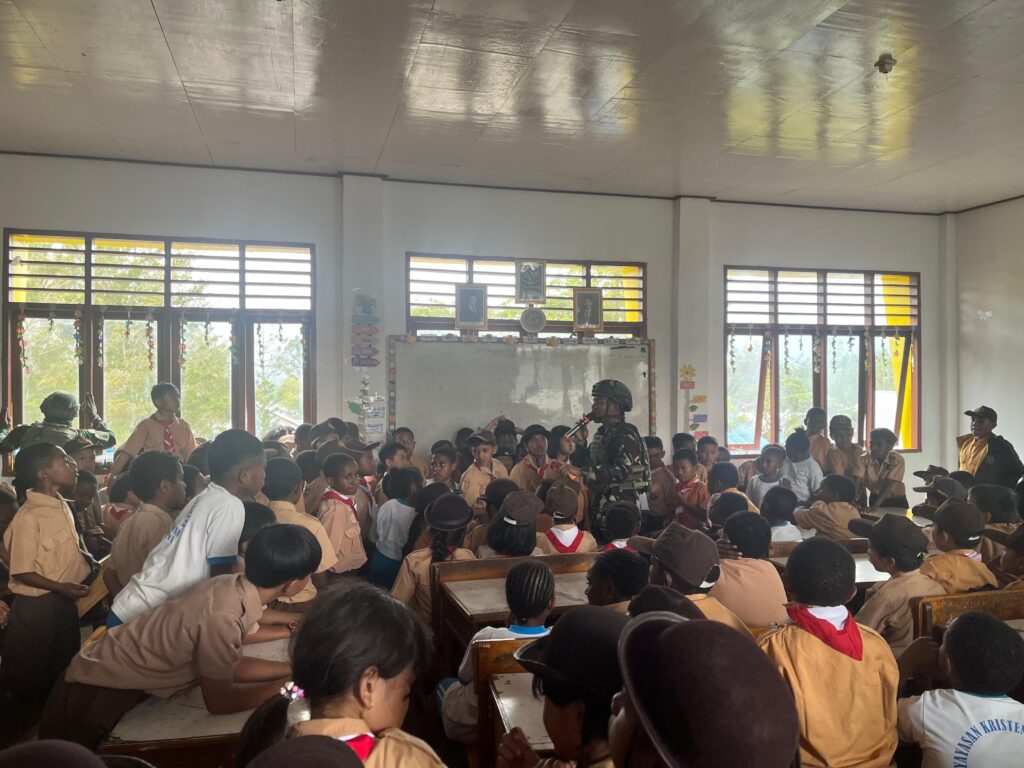 Wamena, – Suasana berbeda terlihat di halaman SD Koinonia pagi ini. Anak-anak tampak antusias menyambut kedatangan prajurit TNI Satgas Yonif 521/DY Pos Napua yang hadir untuk memberikan pembelajaran dan motivasi. Kegiatan ini merupakan bagian dari program TNI dalam mendukung pendidikan dan membangun semangat kebangsaan sejak usia dini. (29/8/2025).
