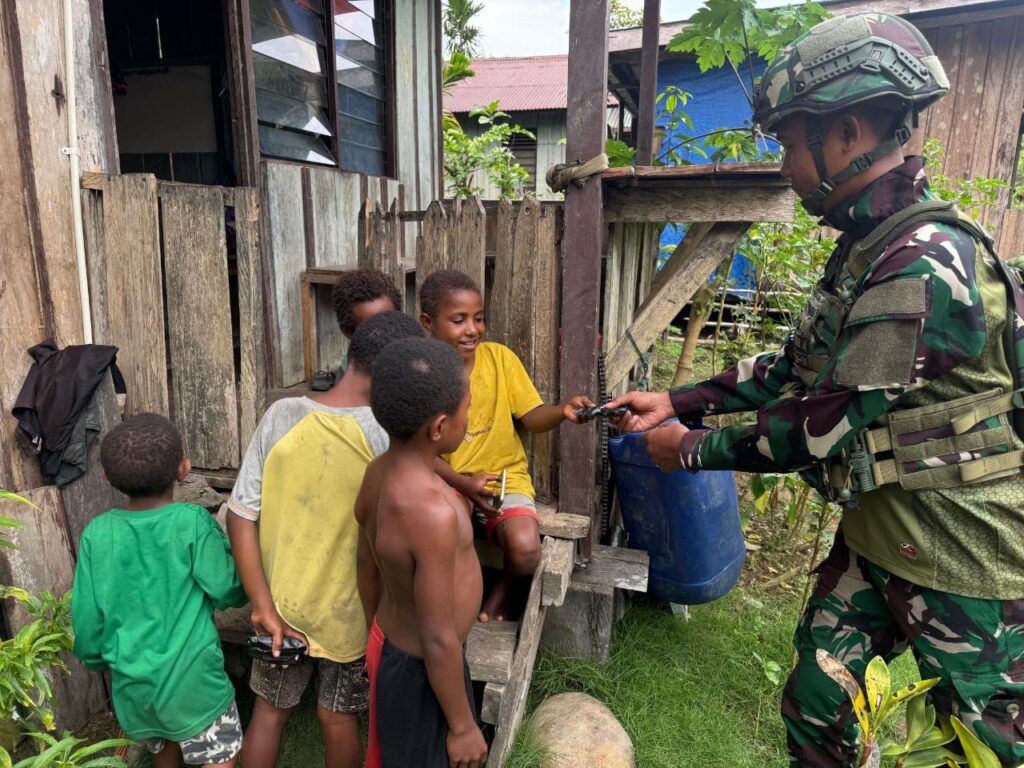 Yalimo – Dalam rangka mempererat hubungan dan menjalin silaturahmi dengan masyarakat di wilayah perbatasan, Personel Pos Benawa Satgas Pamtas RI-PNG Yonif 521/DY melaksanakan kegiatan Anjansana di Kampung Benawa, Distrik Elelim, Kabupaten Yalimo, Papua Pegunungan. (8 Oktober 2025).
