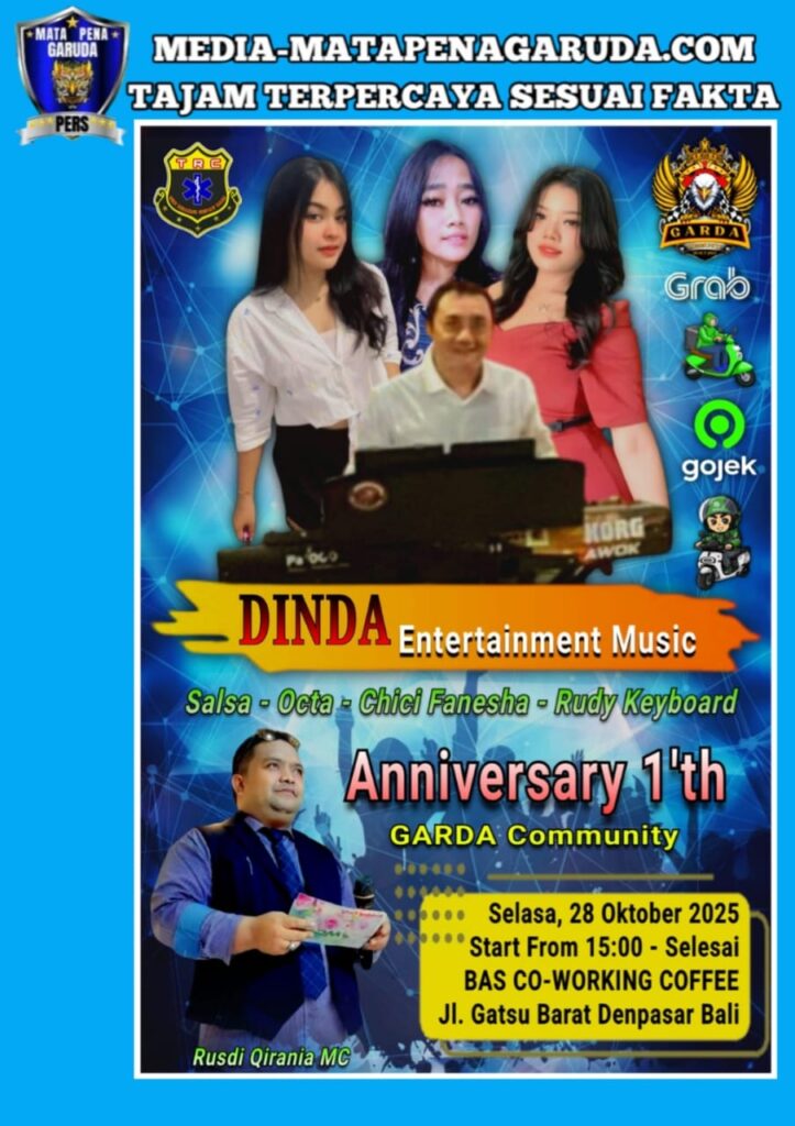 DENPASAR-BALI,. Dinda Entertainment Musik akan menggetar dan menggoyang suasana meriah di Anniversery pertama “GARDA COMMUNITY” yang akan di adakan pada hari selasa 28 0ktober 2025.