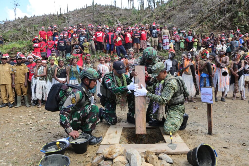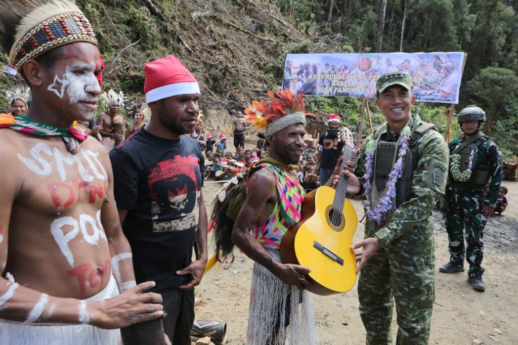 Pada kesempatan tersebut, disalurkan Bansos berupa 100 paket sembako, 2 gitar akustik, 300 paket bingkisan anak, 300 boneka, 150 kaos Merah Putih, 150 topi Sinterklas, serta 5 Alkitab. TNI terus hadir bersama rakyat, membangun Papua.Kogabwilhan III untuk IndonesiaSumber: Kogabwilhan III