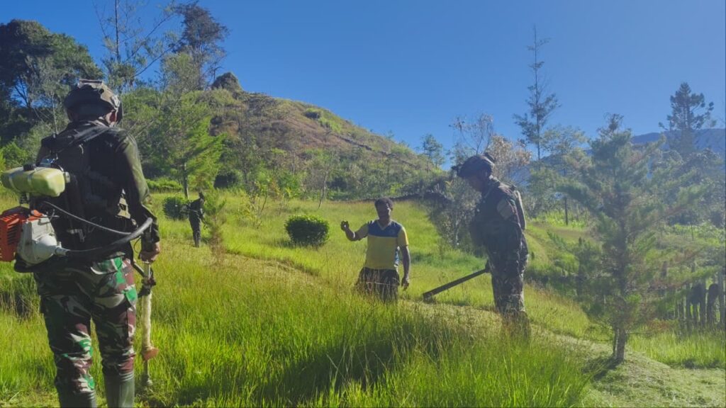 Dengan semangat Bhakti yang menggelora, para prajurit pengabdi ini melaksanakan kegiatan Binter terbatas, menyasar sebuah lokasi yang penuh makna: halaman rumah Bapak Marianus Murib, sang Ketua Missionaris Gereja di Kampung Eromaga, (30 September 2025). Sebuah karya bakti yang sederhana, namun sarat dengan pesan perdamaian dan persaudaraan.