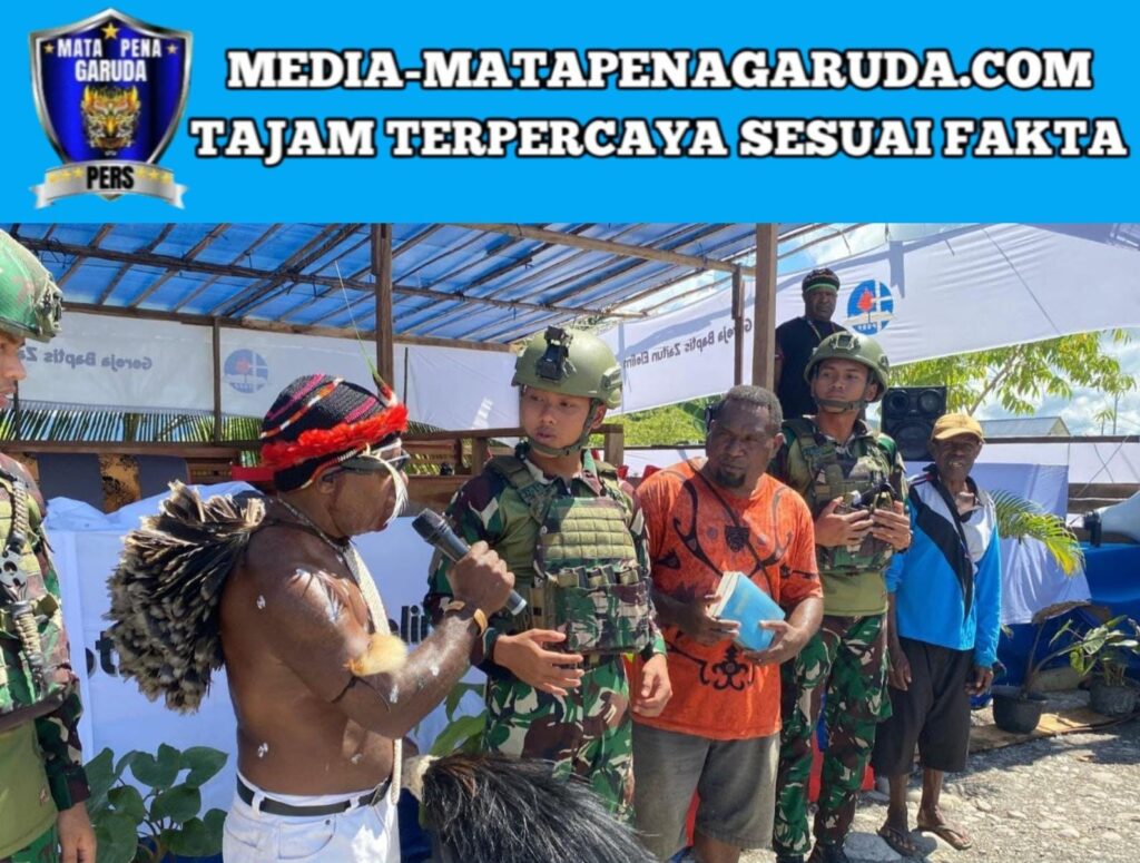 Yalimo, — TNI menggelar berbagai bakti sosial di gereja-gereja Papua, seperti pengobatan massal, renovasi dan pembangunan fasilitas ibadah, serta pembagian sembako berupa Beras 100 kg, Rokok 5 slops, 100 Alkitab yang langsung diterima oleh Panitia Peresmian Gereja Baptis Zaitun Elelim di Bpk. Herman Wenda.