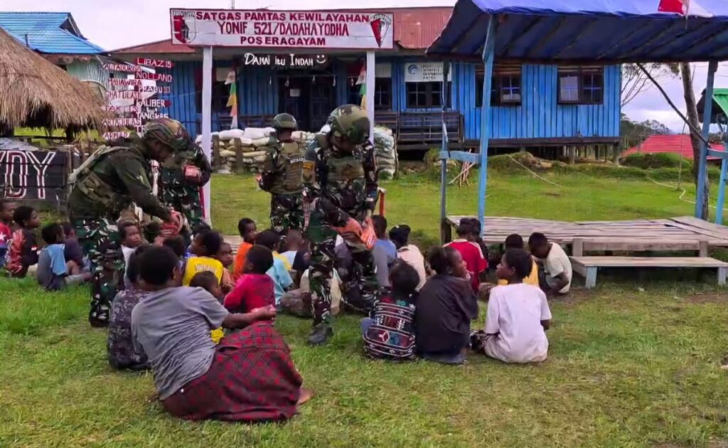 Dalam semangat kemanusiaan dan kepedulian terhadap sesama, Satgas Yonif 521/DY melalui Pos Eragayam menggelar aksi berbagi kasih dengan membagikan makanan siap saji kepada anak anak di distrik Eragayam, Kab. Mamberamo Tengah Papua Pegunungan (23/10/2025).