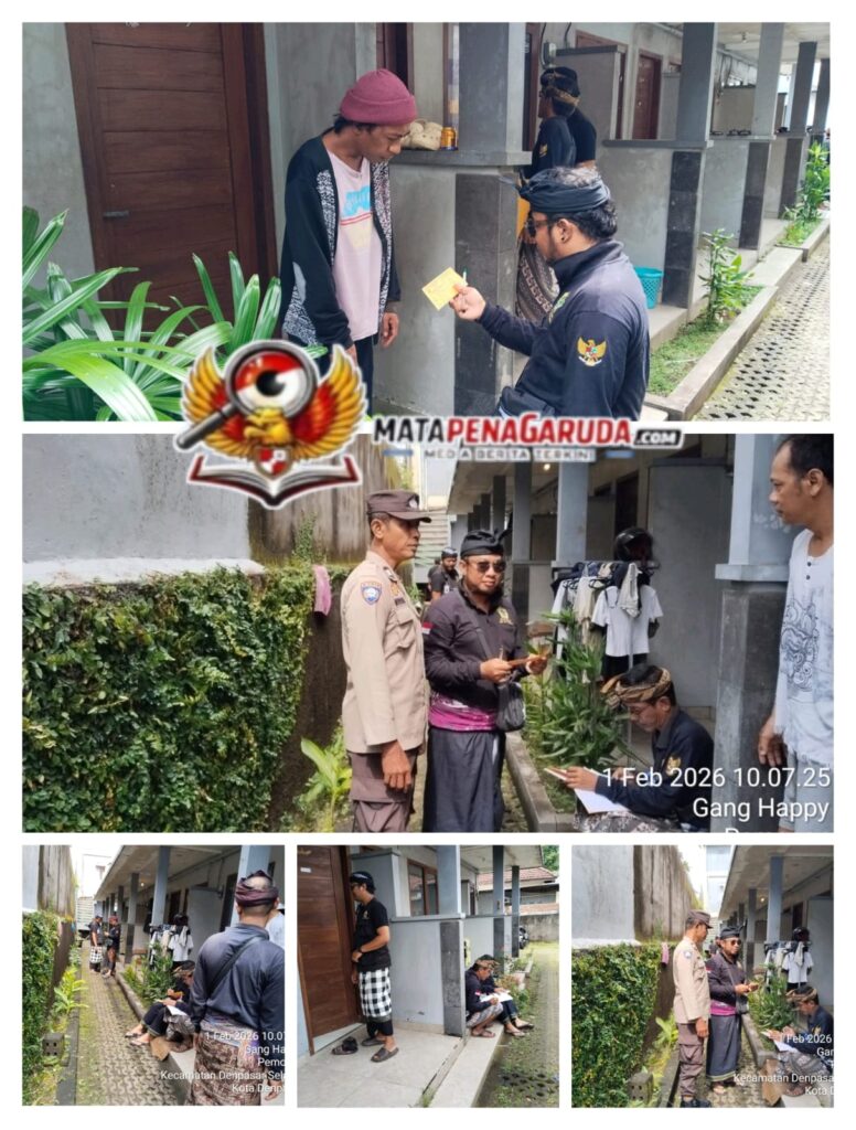 DENPASAR,. Dalam upaya menjaga situasi kamtibmas tetap kondusif serta memastikan ketertiban administrasi kependudukan, Bhabinkamtibmas Desa Pemogan Polsek Denpasar Selatan mendampingi pecalang Banjar Gunung melaksanakan inspeksi mendadak (sidak) penduduk musiman pada Minggu, 1 Februari 2026. Kegiatan dimulai pukul 07.00 WITA hingga selesai, bertempat di wilayah adat Banjar Gunung Pemogan, Denpasar Selatan.