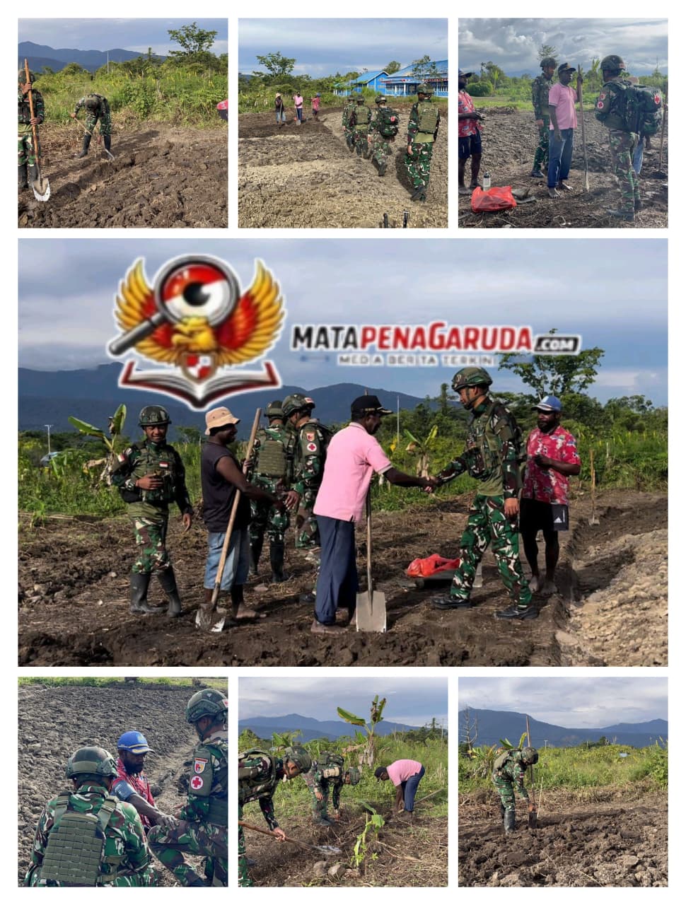 Kobakma, Pembinaan Teritorial (Binter) TNI AD gencar menyiapkan dan melaksanakan pendampingan lahan pangan di Papua, Kegiatan ini berfokus pada pengolahan lahan tidur menjadi lahan produktif serta pendampingan petani lokal, terutama di wilayah Mamberamo Tengah, Papua Pegunungan (25/01/2026).