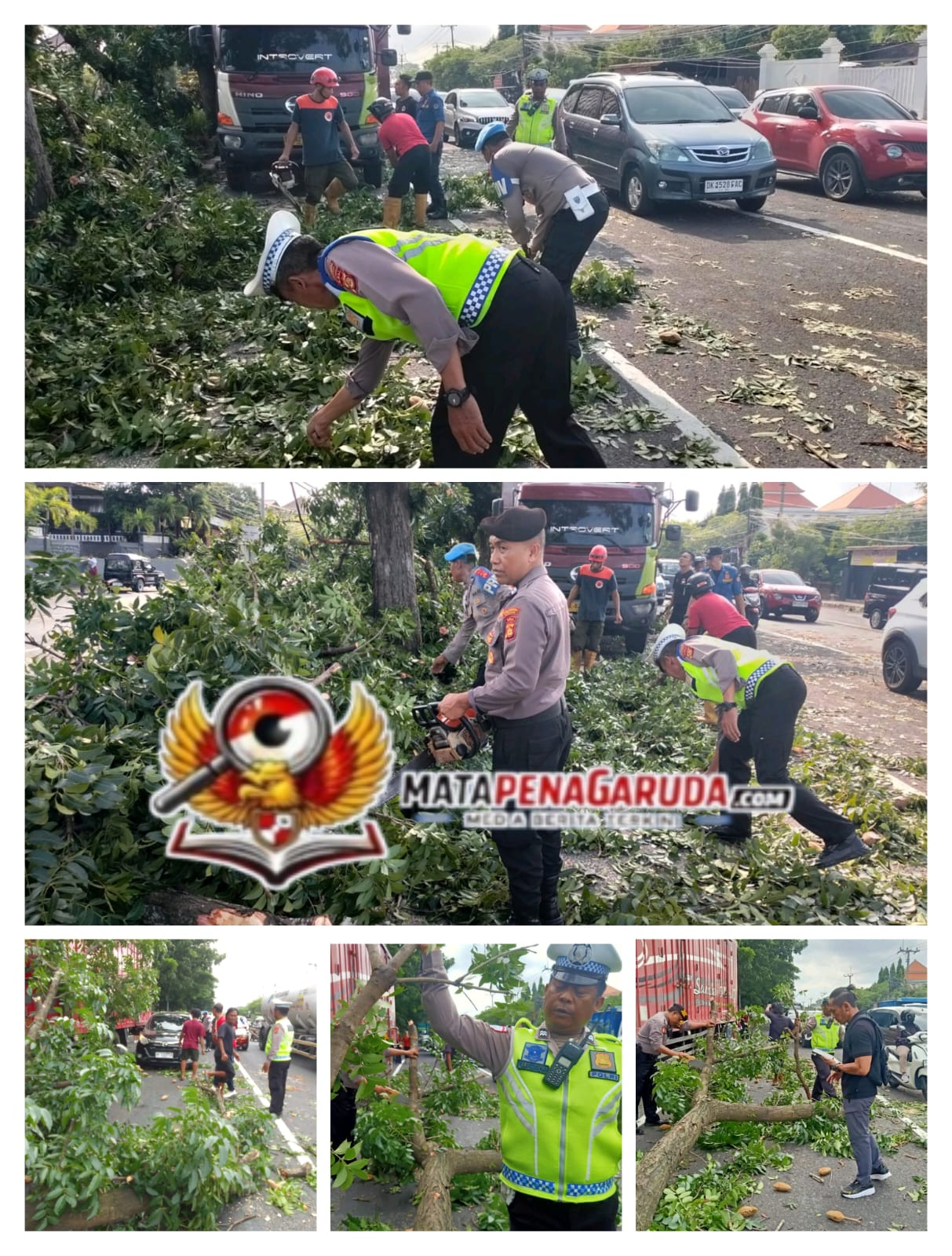 Pada pukul 15.10 WITA, personel Polsek Dentim tiba di lokasi kejadian dan langsung melakukan pengamanan TKP, mengatur arus lalu lintas, serta berkoordinasi dengan BPBD untuk proses evakuasi. Selain melakukan pengamanan, personel Polsek Dentim juga turut membantu proses pemotongan dan pembersihan pohon tumbang bersama tim BPBD guna mempercepat penanganan serta meminimalisir kemacetan di sekitar lokasi.