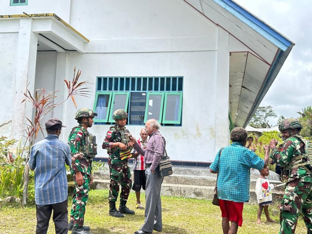 Yalimo – TNI dan masyarakat beribadah bersama di gereja, menyatukan iman dan menciptakan rasa kebersamaan yang menguatkan. Dalam rangka mempererat hubungan kebersamaan sekaligus menjawab kebutuhan rohani masyarakat, Satgas TNI yang bertugas di Distrik Apalapsili, Kab.Yalimo Provinsi Papua, (05/10/2025), kembali melakukan aksi nyata kepedulian dengan memberikan bantuan berupa Alkitab kepada warga di *Gereja Laheroi Apalapsili* .