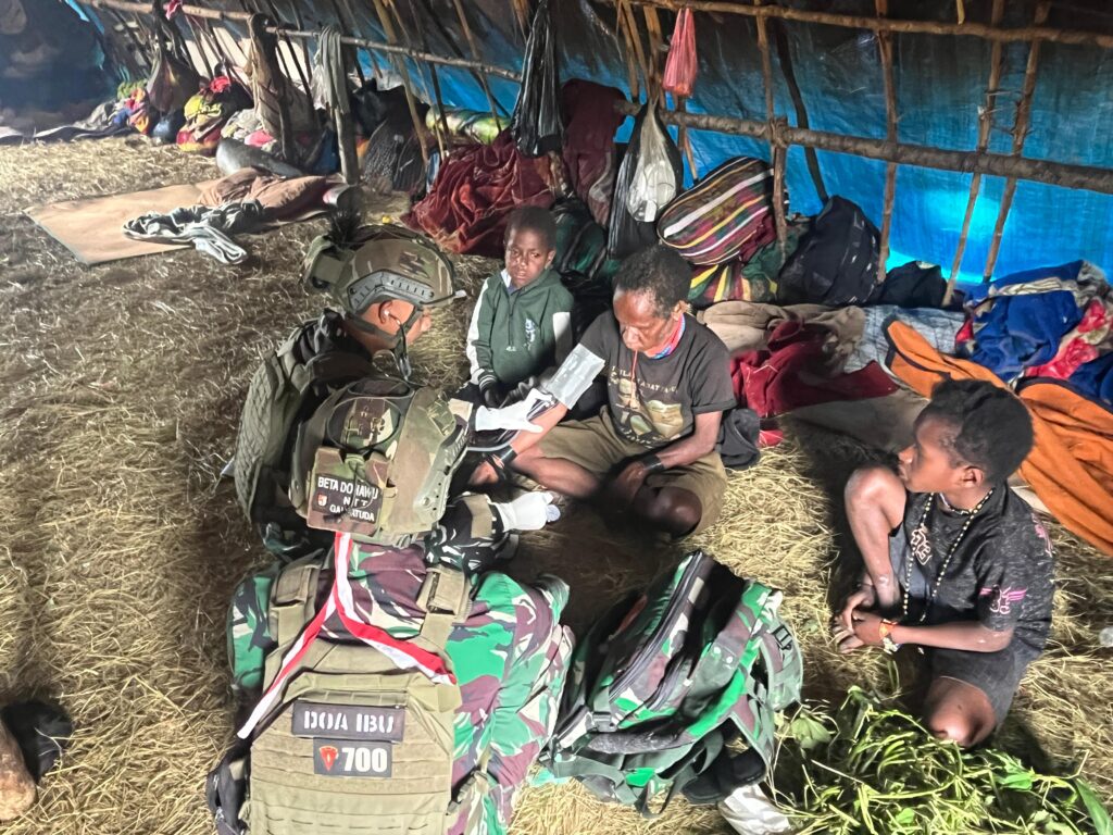 [ PUNCAK ] – Kepedulian Satgas Yonif 700/Wira Yudha Cakti kembali hadir di tengah masyarakat. Melalui Pos Eromaga, prajurit TNI melaksanakan kegiatan binter terbatas dengan memberikan pelayanan kesehatan gratis bagi warga yang berada di tempat pengungsian Kampung Eronggobak, Distrik Omukia, Kabupaten Puncak. (30 Agustus 2025).