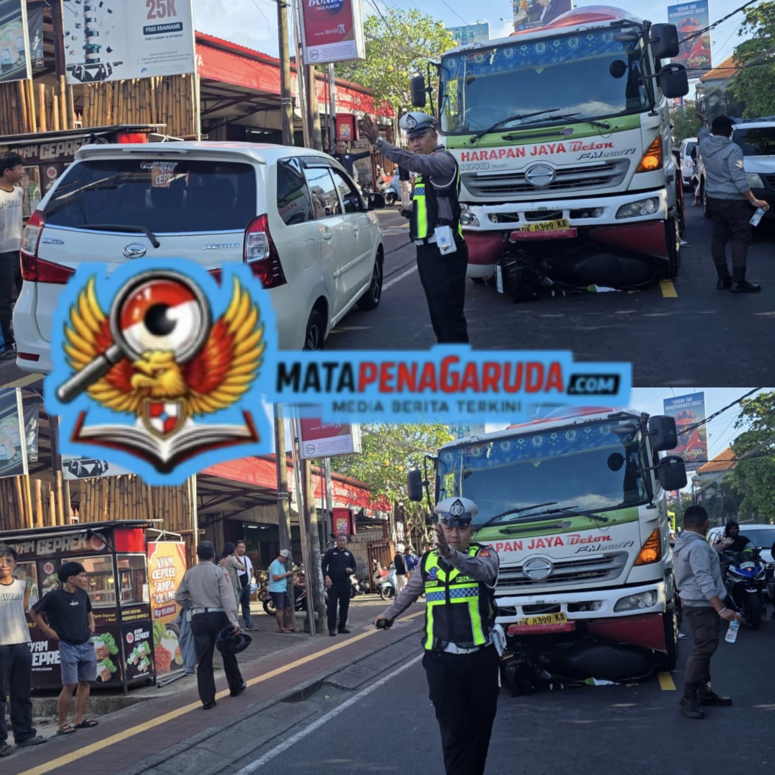 [KUTA SELATAN] Kecelakaan lalu lintas terjadi di Jalan Raya Uluwatu Utara, tepatnya di kawasan Perumahan Puri Gading, Kuta Selatan, pada Sabtu (4/4/2026) sekitar pukul 15.30 WITA. Insiden tersebut melibatkan satu unit truk molen, satu mobil Daihatsu Terios, dan satu sepeda motor.