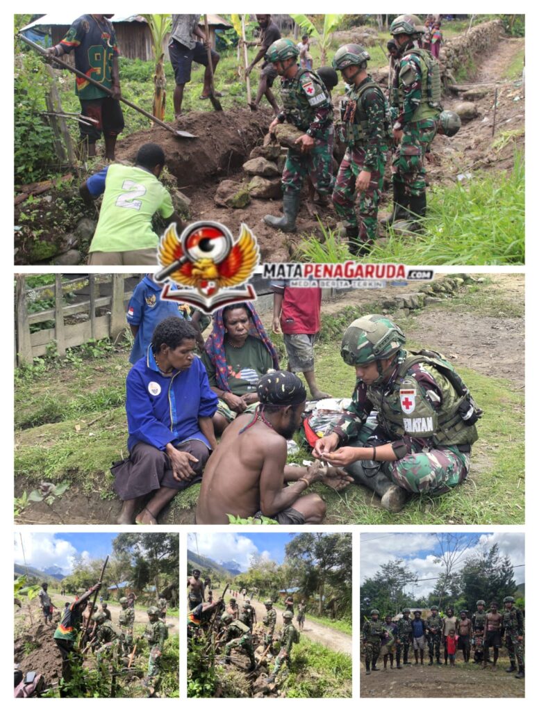 Walesi, —Dalam rangka mempererat hubungan antara TNI dan masyarakat, Satgas Yonif 521/DY melaksanakan kegiatan gotong royong bersama warga di Distrik Walesi, Kabupaten Jayawijaya, Provinsi Papua Pegunungan. (7 Februari 2026).