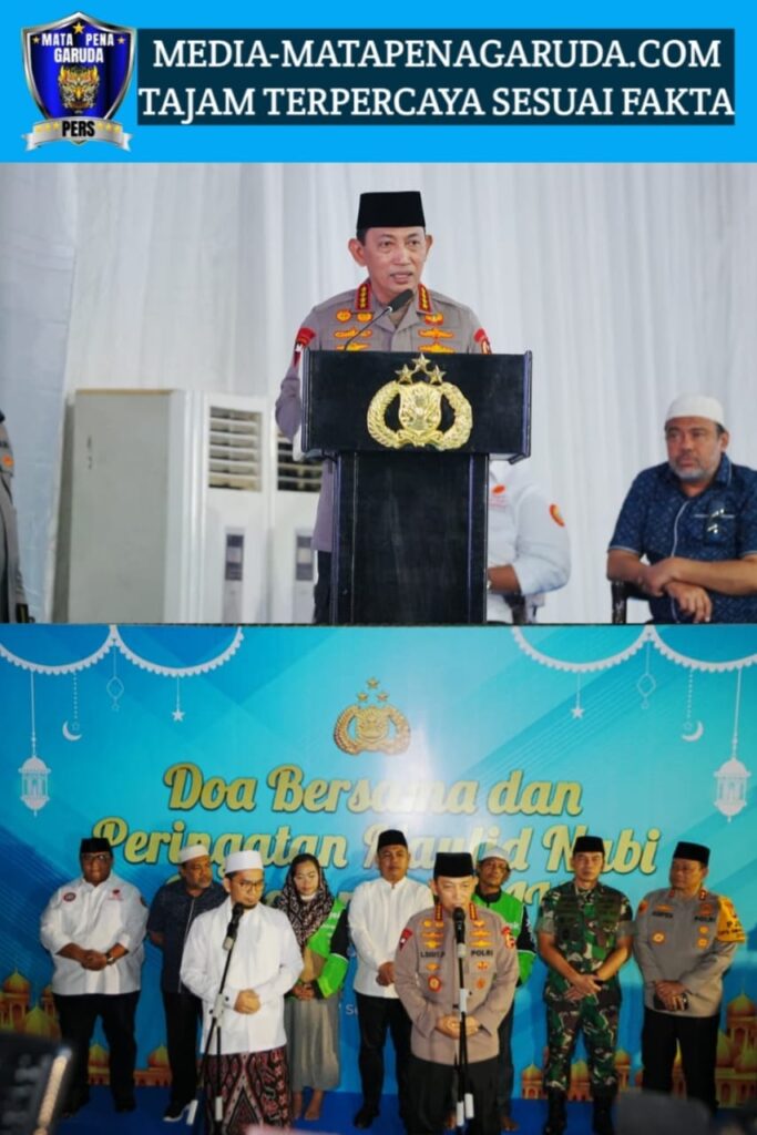 Jakarta. Kapolri Jenderal Polisi Drs. Listyo Sigit Prabowo mengajak seluruh elemen masyarakat untuk terus menjaga persatuan dan kesatuan di tengah dinamika yang ada. Hal itu disampaikan dalam sambutan saat menghadiri acara doa bersama dan peringatan Maulid Nabi Muhammad SAW di Lapangan Presisi Polda Metro Jaya.