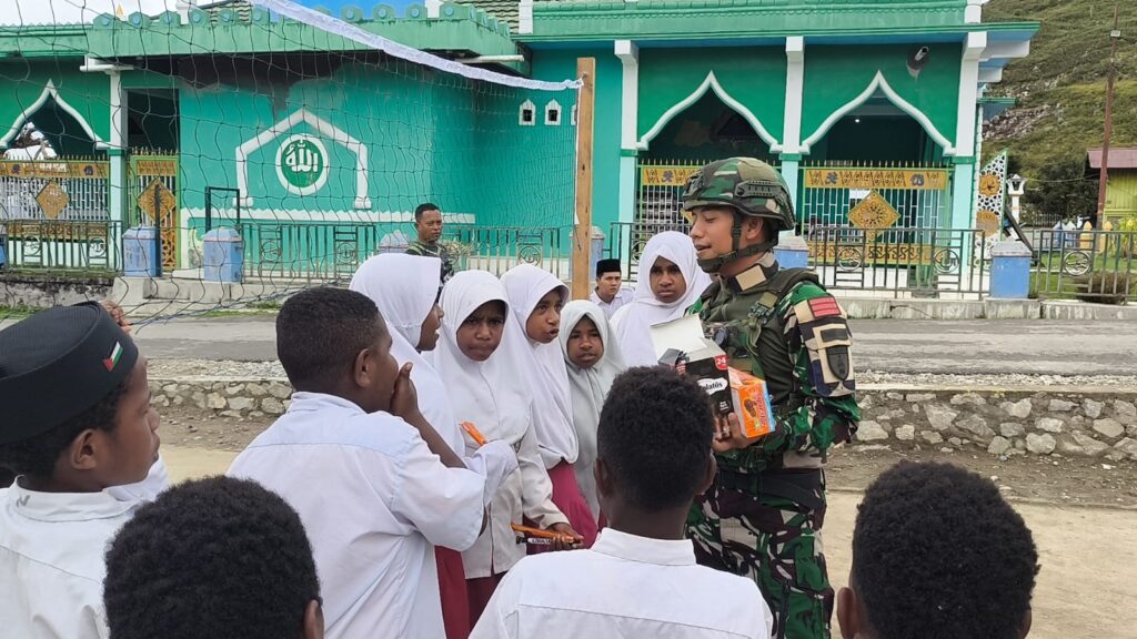 Menunjukkan kepedulian TNI terhadap kebugaran masyarakat lokal, Satgas Yonif 521/DY termasuk memberikan bantuan sarana olahraga karena minimnya fasilitas olahraga bagi masyarakat dan anggota Satgas di Distrik Walesi, Jayawijaya, Papua Pegunungan (28/10/2025)