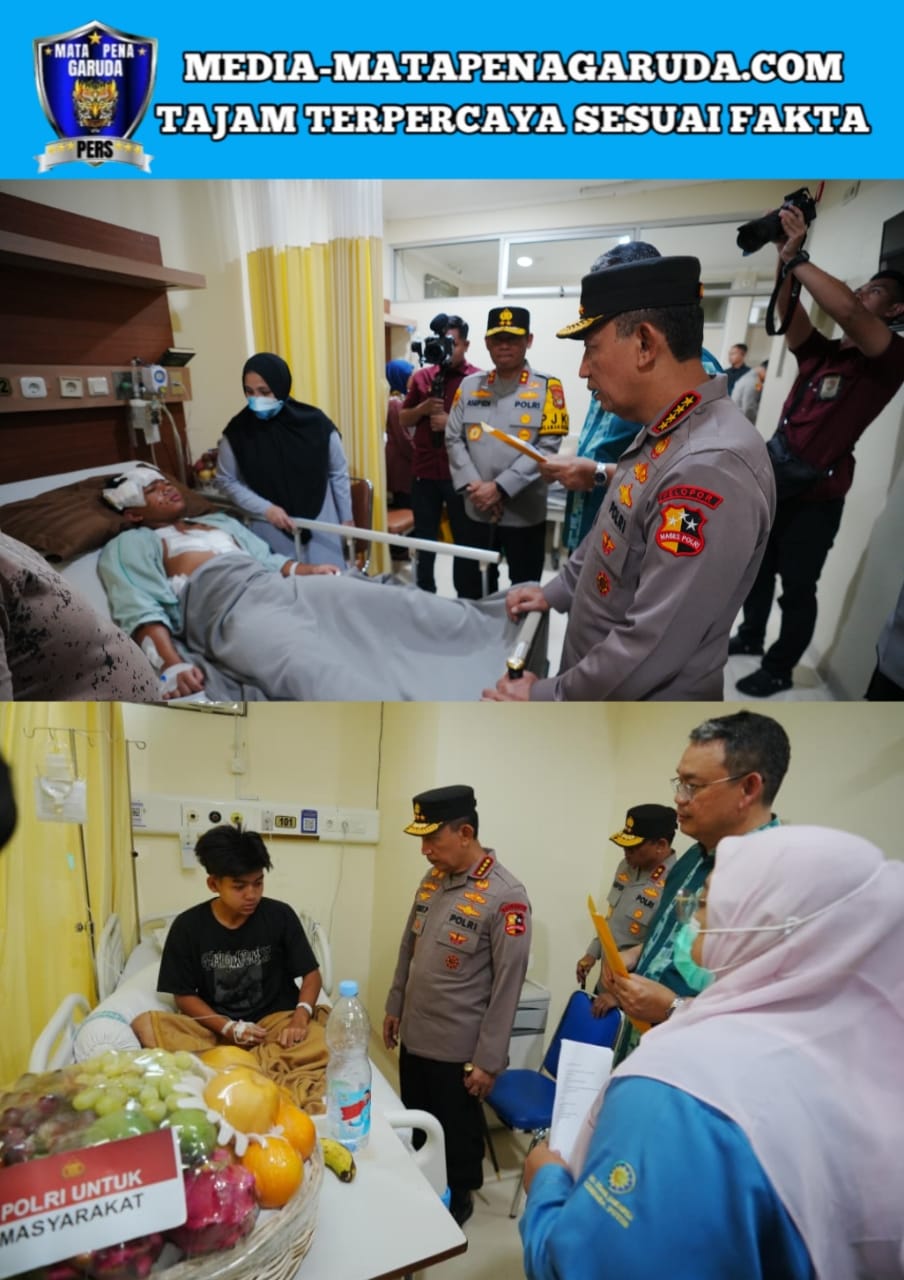 JAKARTA – Kapolri Jenderal Polisi Listyo Sigit Prabowo mengunjungi para korban ledakan di SMAN 72 Kelapa Gading, Jakarta yang kini dirawat di Rumah Sakit Islam (RSI) Cempaka Putih Jakarta, Sabtu (8/11/2025). Listyo datang didampingi oleh Kapolda Metro Jaya Irjen Pol Asep Edi Suheri dan Kapolres Metro Jakarta Pusat Kombes Polisi Susatyo Purnomo Condro.