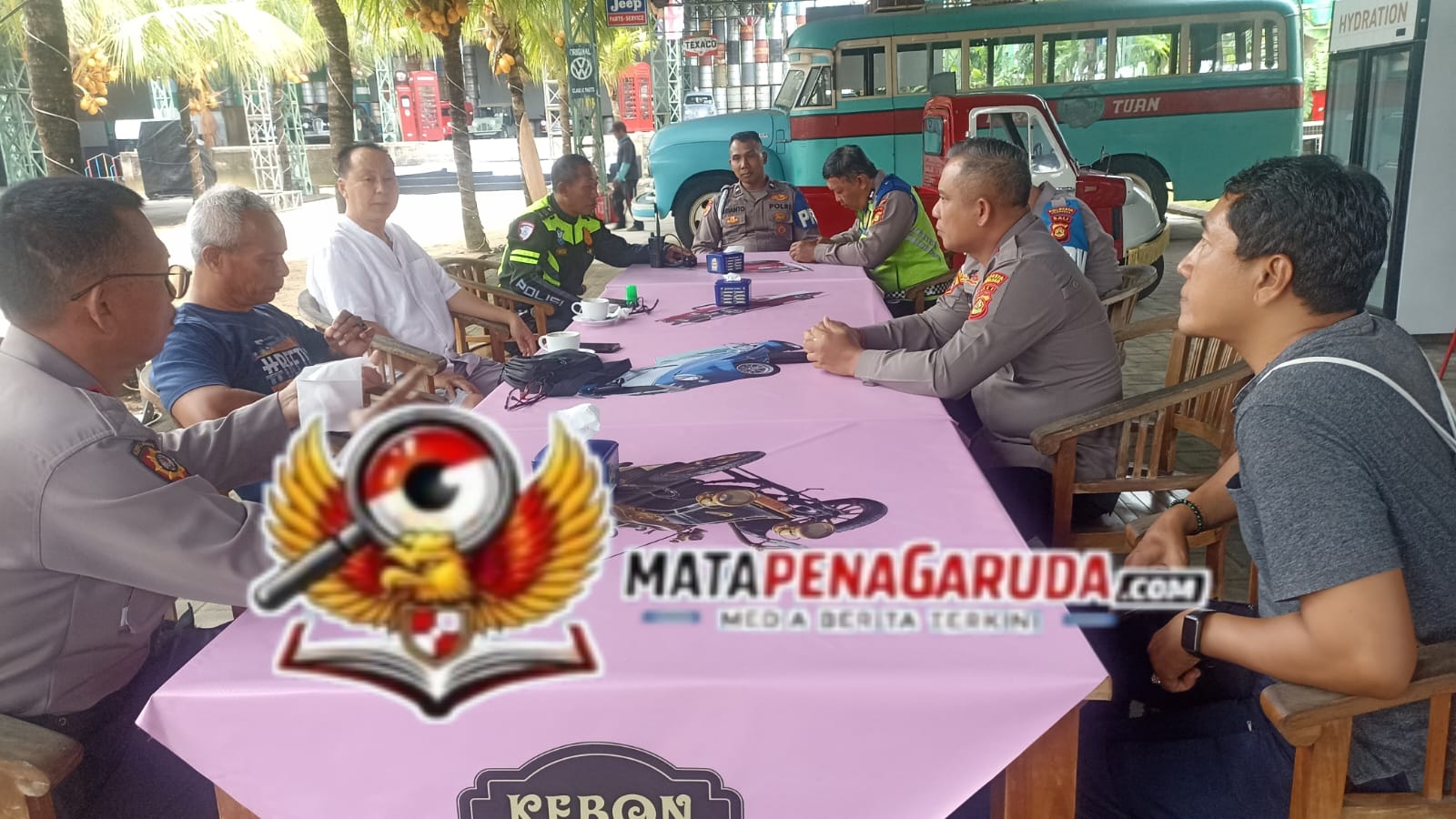 Hadir dalam kegiatan tersebut Kapolsek Dentim, Owner Kebon Vintage Cars Bali Bapak Yos, Kanit Intelkam Polsek Dentim, Kanit Provost, Panit Lantas, anggota Polsek Dentim, Nyoman Sujana (eks Kanit Bimas Polsek Dentim), serta staf Kebon Vintage Cars Bali.