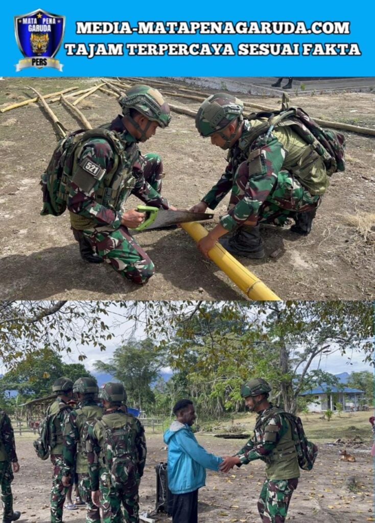 Memberamo Tengah, –Satgas Yonif 521/DY melaksanakan kegiatan karya bakti di gereja bersama masyarakat setempat sebagai wujud kepedulian dan semangat gotong royong dalam membantu sarana ibadah warga di Gereja Kobakma, Mamberamo Tengah, Papua Pegunungan (09/11/2025).