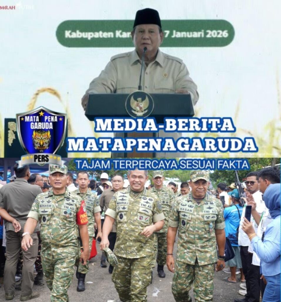 [ KARAWANG ] — Kepala Staf Angkatan Darat (Kasad) Jenderal TNI Maruli Simanjuntak, M.Sc., menghadiri Panen Raya yang dirangkaikan dengan pengumuman capaian swasembada pangan nasional bersama Presiden Republik Indonesia Prabowo Subianto di Cilebar, Kabupaten Karawang, Jawa Barat, Rabu (7/1/2026).