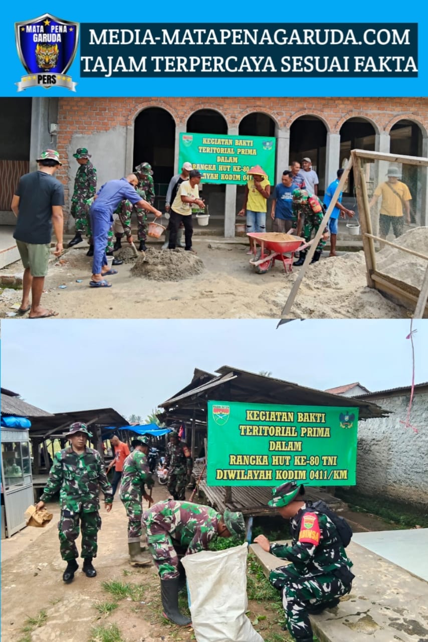 Danramil 411-04/Tmj Lettu Inf Sudarto pada kesempatan kesiapan karya Bakti TNI Mengatakan, komitmen TNI dalam hal ini Kodim dan Koramil mendukung penuh pembangunan Nasional serta menjalin tali silaturahmi dengan masyarakat.