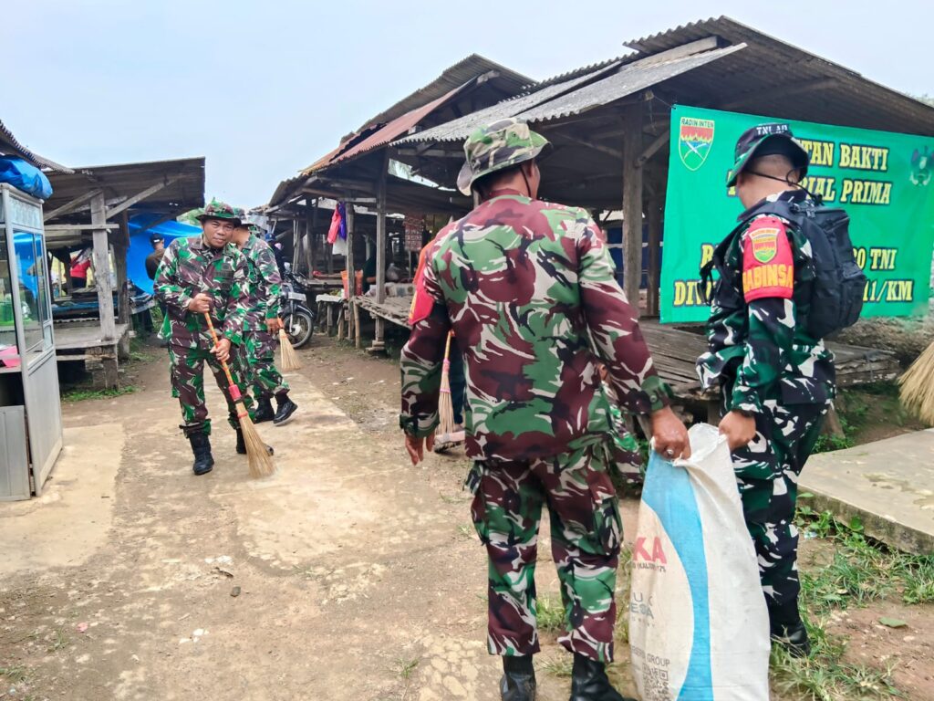 Kegiatan ini juga merupakan implementasi dari semangat karya Bakti untuk kebersihan lingkungan sekita Koramil 411-04/Tmj. tuturnya.