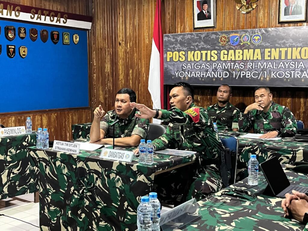 Sementara itu, Dansatgas Letkol Arh Andy Qomarudin memaparkan kondisi terkini di wilayah perbatasan serta progres pelaksanaan tugas Satgas, termasuk kegiatan patroli rutin, pembinaan teritorial, dan sinergi dengan instansi terkait di daerah.
