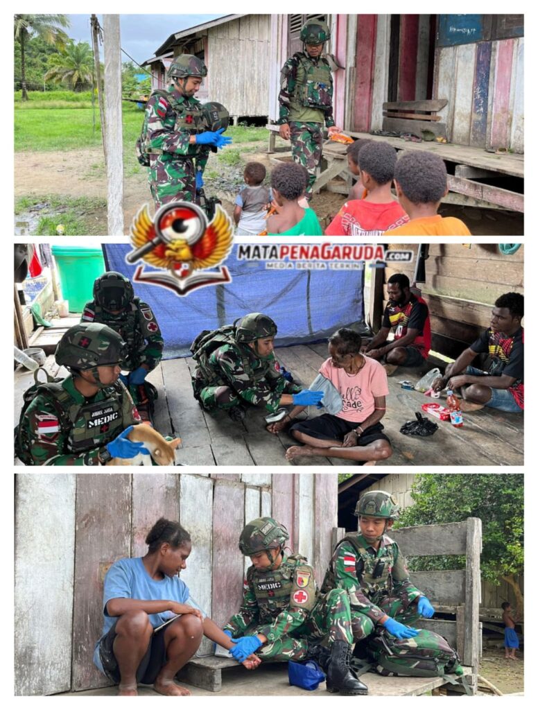 Kegiatan ini di lakukan sebagai bagian dari pembinaan teritorial (Binter) guna membantu masyarakat yang memiliki keterbatasan akses terhadap fasilitas kesehatan. Personel kesehatan Satgas memberikan pemeriksaan umum, pengobatan ringan, serta pembagian vitamin kepada warga, mulai dari anak-anak hingga lanjut usia.