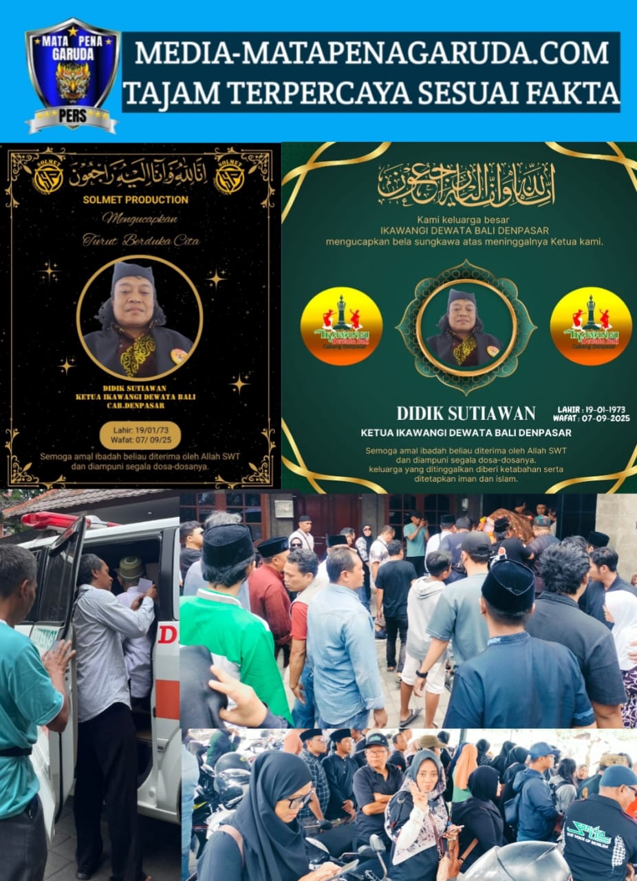Keluarga besar Ikawangi Dewata Bali berduka, Bapak DIDIK SUTIAWAN meninggal dunia diusia 51 tahun, lahir 19/01/1973, wafat 07/09/2025, sa’at aktif menjabat sebagai ketua cabang Ikawangi Dewata Bali Denpasar.