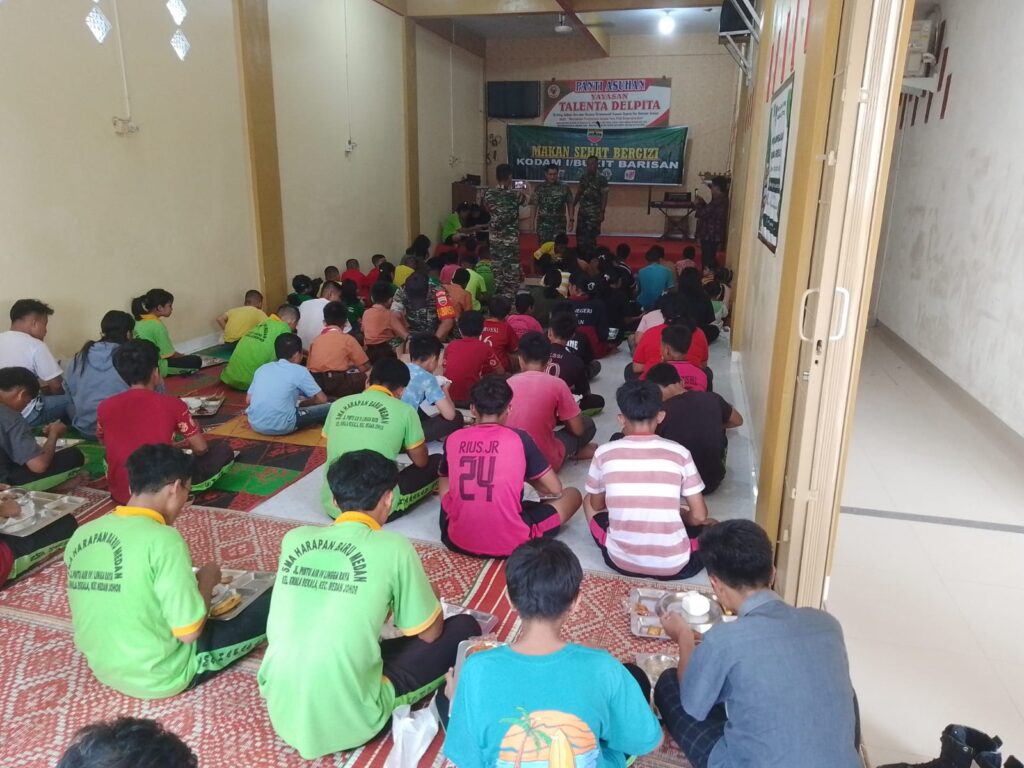 Medan – Kodam I/Bukit Barisan (I/BB) membagikan 250 paket Makan Sehat Bergizi (MSB) untuk anak sekolah dan panti asuhan di Medan, Jumat (29/8/2025). Paket makanan bergizi itu dibagikan oleh personel Bekangdam I/BB dan Koramil 0201-08/MA.