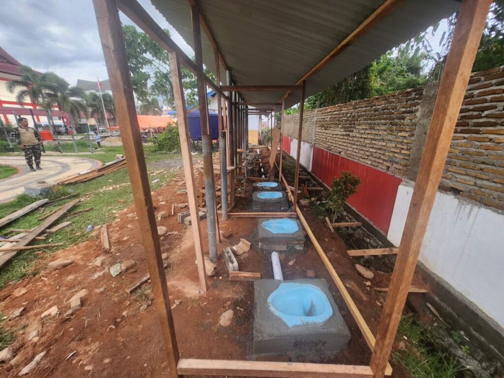 Tapanuli Tengah, – Kodim 0211/Tapanuli Tengah bersama Korem 023/KS terus mempercepat pembangunan fasilitas MCK demi memenuhi kebutuhan dasar para pengungsi di Posko GOR Pandan dan Aek Parira, Sibolga Julu, Selasa (9/12/2025). Pengerjaan di lakukan serentak dengan melibatkan personel gabungan di lapangan.