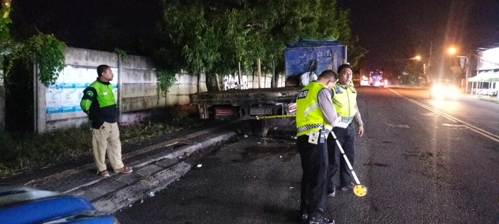 Menurut saksi mata Pak KALEB sebagai security di sebuah toko motor listrik yang ada di sebrang jalan Tempat Kejadian Perkara (TKP) sekira jam 02:48 Wita Terdengar suara benturan keras, terlihat sebuah motor merk HONDA tanpa plat nomor nabrak bagian belakang truck tronton yang terparkir sedari tadi, mau saya tolong ternyata setelah saya mendekat korban sudah tidak bernyawa, dengan posisi duduk tengkurap ke aspal di bagian belakang ban sebelah kanan dibawah bak truck di belakang motornya, motor korban tetap berdiri pas di belakang truck tersebut, Sopir truck sedang tidur di depan sebuah warung yang sudah tutup bersebelahan dengan toko motor listrik kami,. ” Ujarnya.