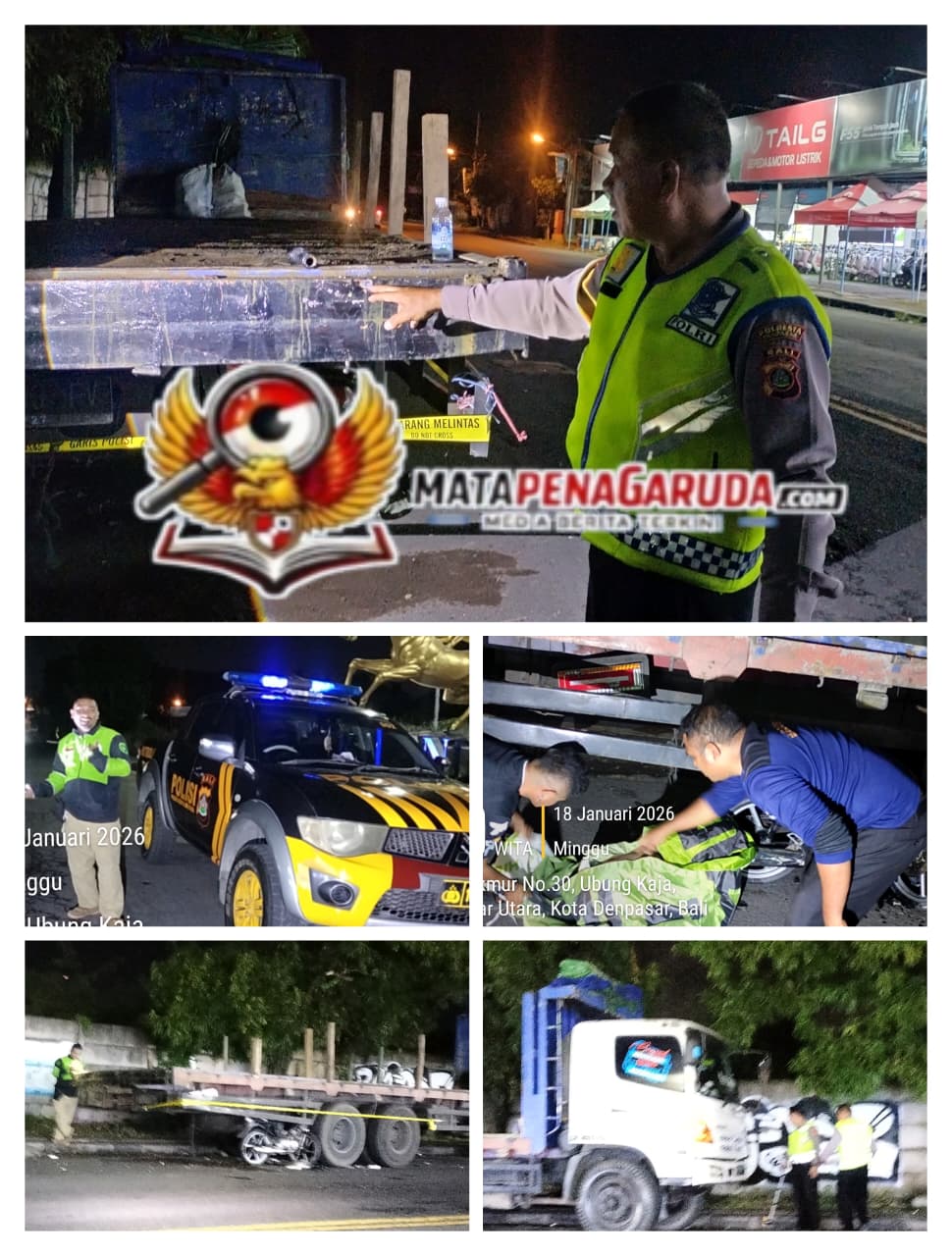 DENPASAR,.- Kembali terjadi kecelakaan maut di Jalan Kargo, Desa ubung kaja, Kecamatan Denpasar utara, kota Denpasar, Bali Minggu 18/01/2026.