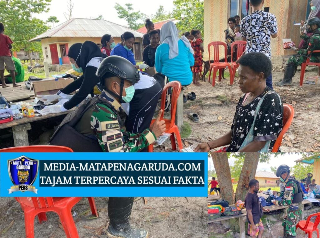 [ PAPUA BARAT ] – Dengan jarak yang cukup jauh dari jangkauan kota, Satgas Pamtas RI-PNG Kewilayahan Yonif 410/Alugoro melaksanakan Pelayanan Kesehatan dan Baksos di Posyandu Kampung Seimeba Rk 2, Distrik Tahota, Kabupaten Mansel, Provinsi Papua Barat. Kamis, (04 Desember 2025).
