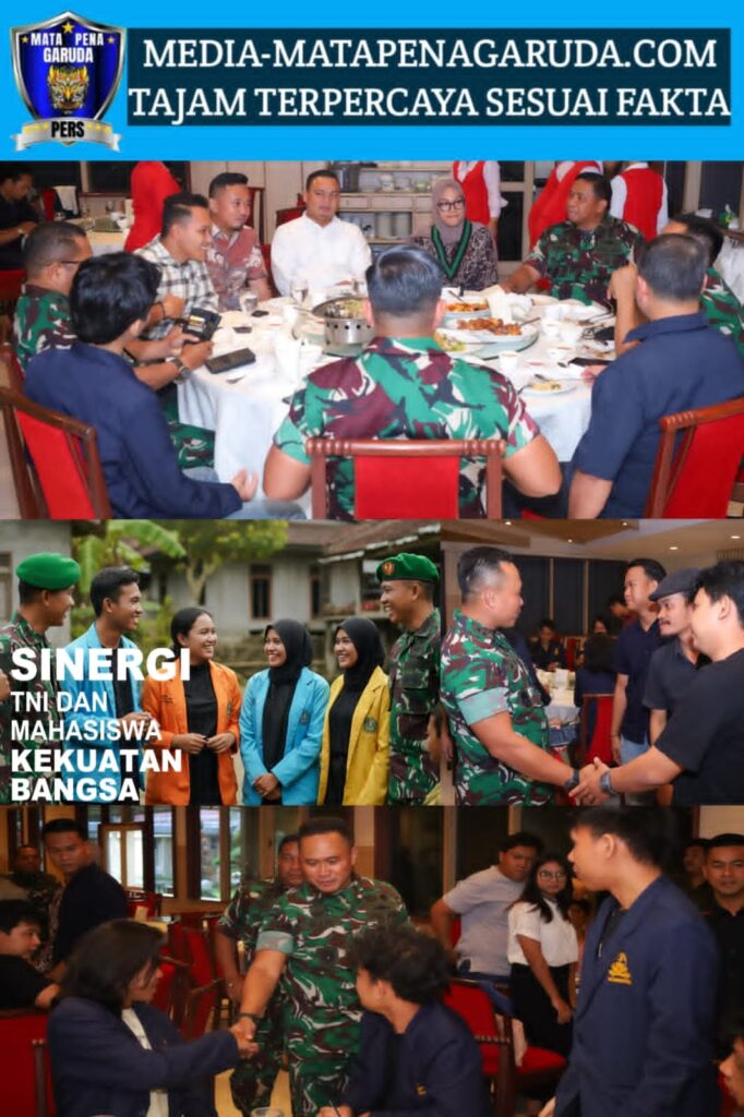 Medan, 20 September 2025 – Pangdam I/Bukit Barisan Mayjen TNI Rio Firdianto mengapreisiasi peran pemuda dan mahasiswa yang ikut menjaga keamanan dan kondusifitas wilayah. Hal itu ia sampaikan saat silaturahmi dengan Ketum BEM SI Pusat, Muzzamil Ihsan bersama Kelompok Cipayung Plus Kota Medan dan Ketua-Ketua Fakultas Universitas HKBP Nommensen di Wisma Benteng, Jumat (19/9/2025).