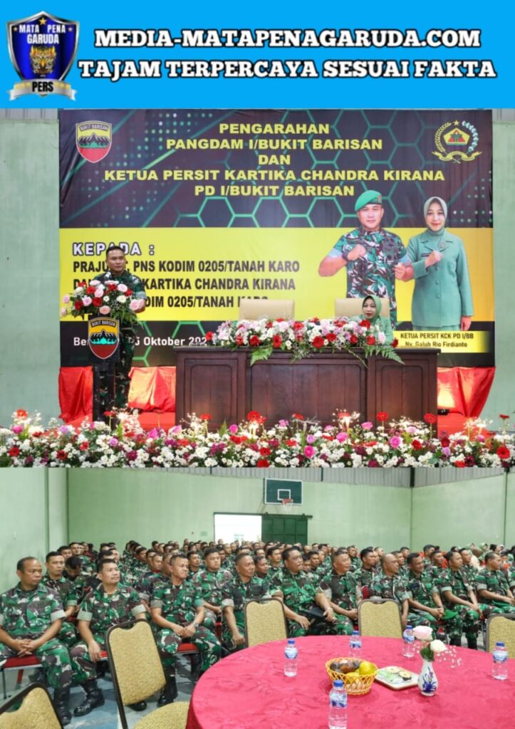 Karo – Pangdam I/Bukit Barisan Mayjen TNI Rio Firdianto bersama Ketua Persit KCK Daerah I/BB Ny. Galuh Rio Firdianto memberikan pengarahan kepada prajurit, PNS, dan Persit Kodim 0205/Tanah Karo bertempat di Makodim 0205/Tanah Karo, Rabu (15/10/2025).