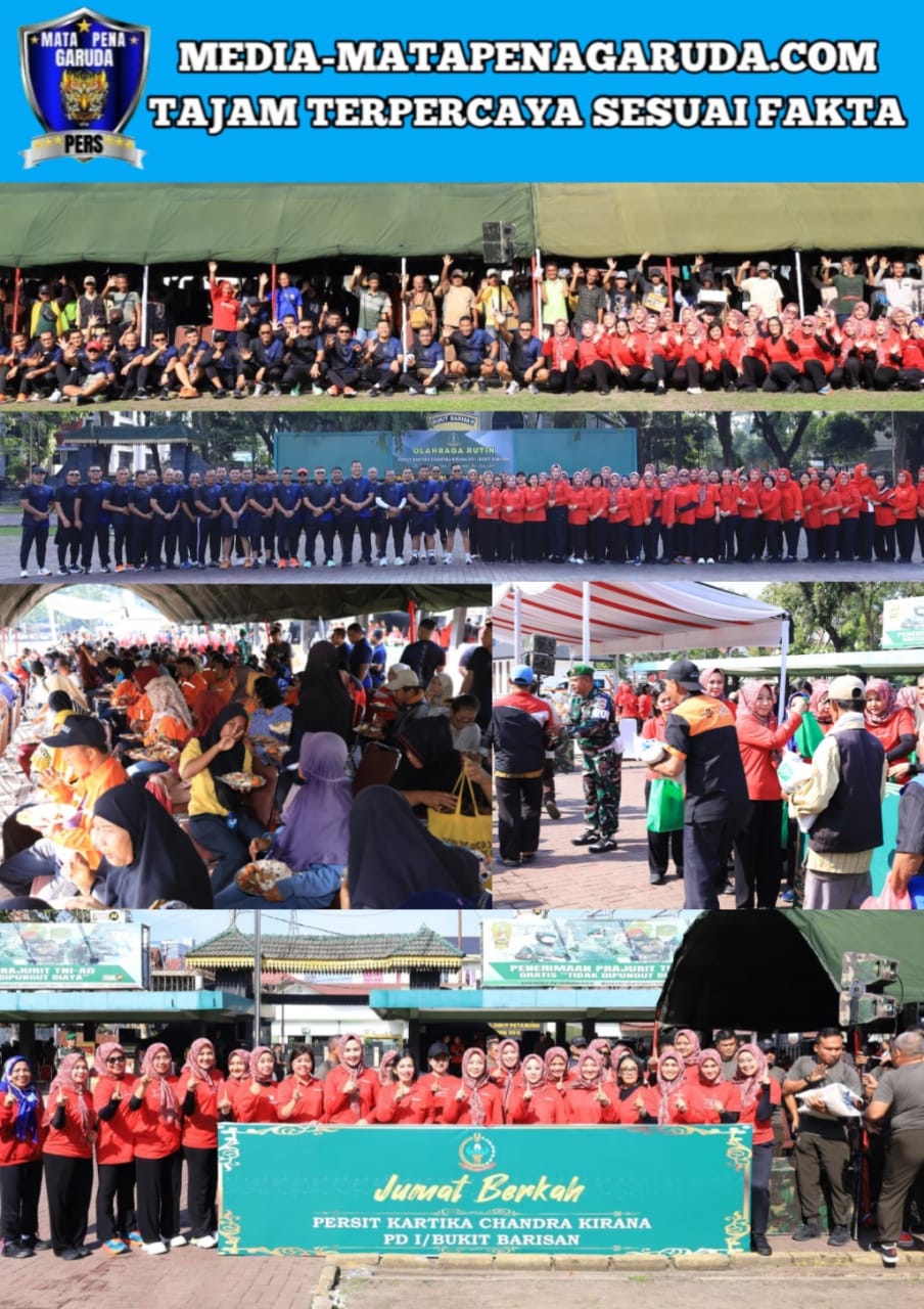 Medan, 1 November 2025 –Pangdam I/Bukit Barisan, Mayjen TNI Rio Firdianto bersama Ketua Persit Kartika Chandra Kirana Daerah I/Bukit Barisan, Ny. Galuh Rio Firdianto, melaksanakan Olahraga Bersama,Jumat Berkah dan Pembagian Sembako di Lapangan Benteng Medan, Jumat (31/10/2025).