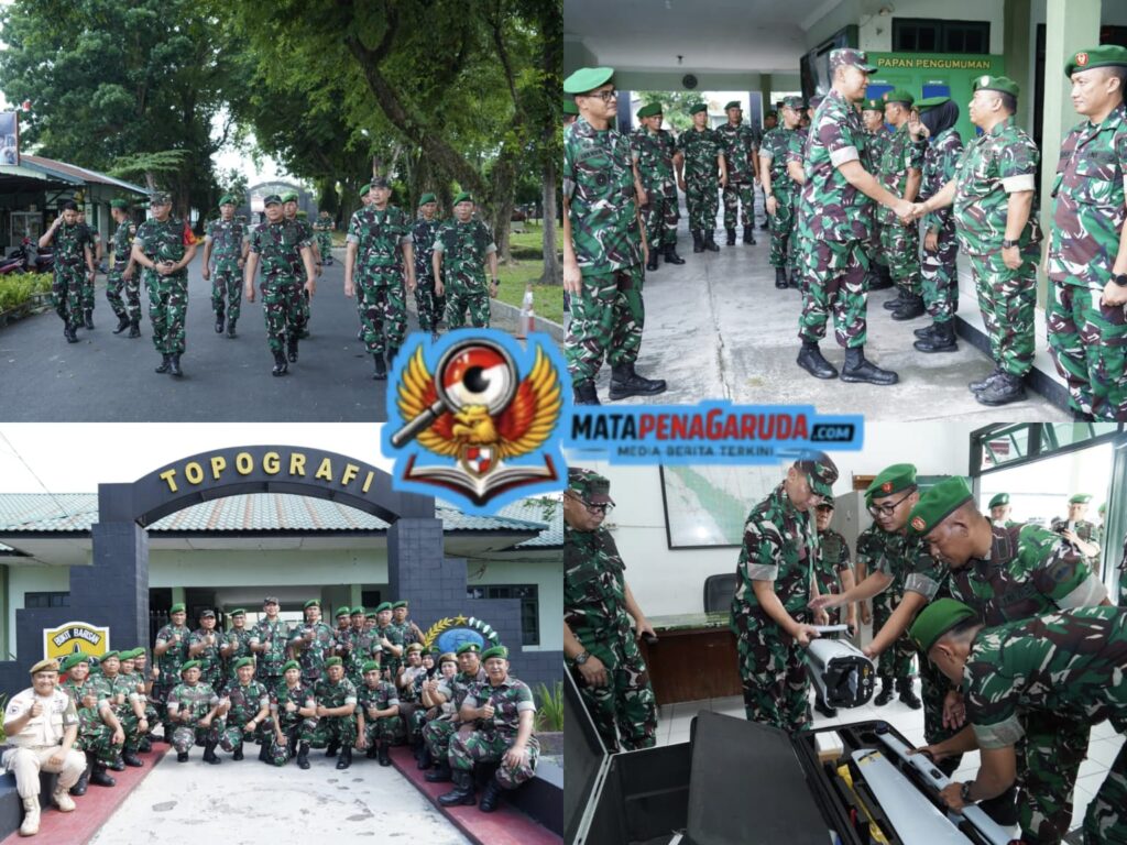 Di satuan ini, Pangdam melakukan pemeriksaan pangkalan serta mengecek materiil topografi, meliputi drone, gudang peta, serta peralatan lainnya seperti GPS untuk memastikan seluruh perlengkapan dalam kondisi siap operasional.