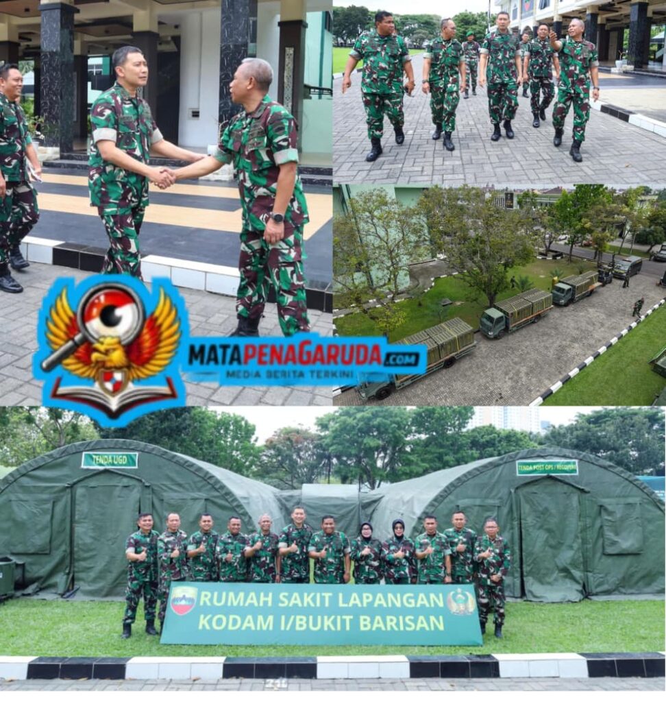 [ MEDAN ] – Pangdam I/BB Mayjen TNI Hendy Antariksa meninjau langsung kegiatan gelar rumah sakit lapangan (Rumkitlap) yang dilaksanakan oleh Kesehatan Kodam I/Bukit Barisan (Kesdam I/BB) di Lapangan Hijau Makodam I/BB, Jumat (27/3/2026). Kegiatan ini merupakan bentuk kesiapsiagaan dukungan kesehatan dalam menghadapi berbagai kondisi darurat di lapangan.