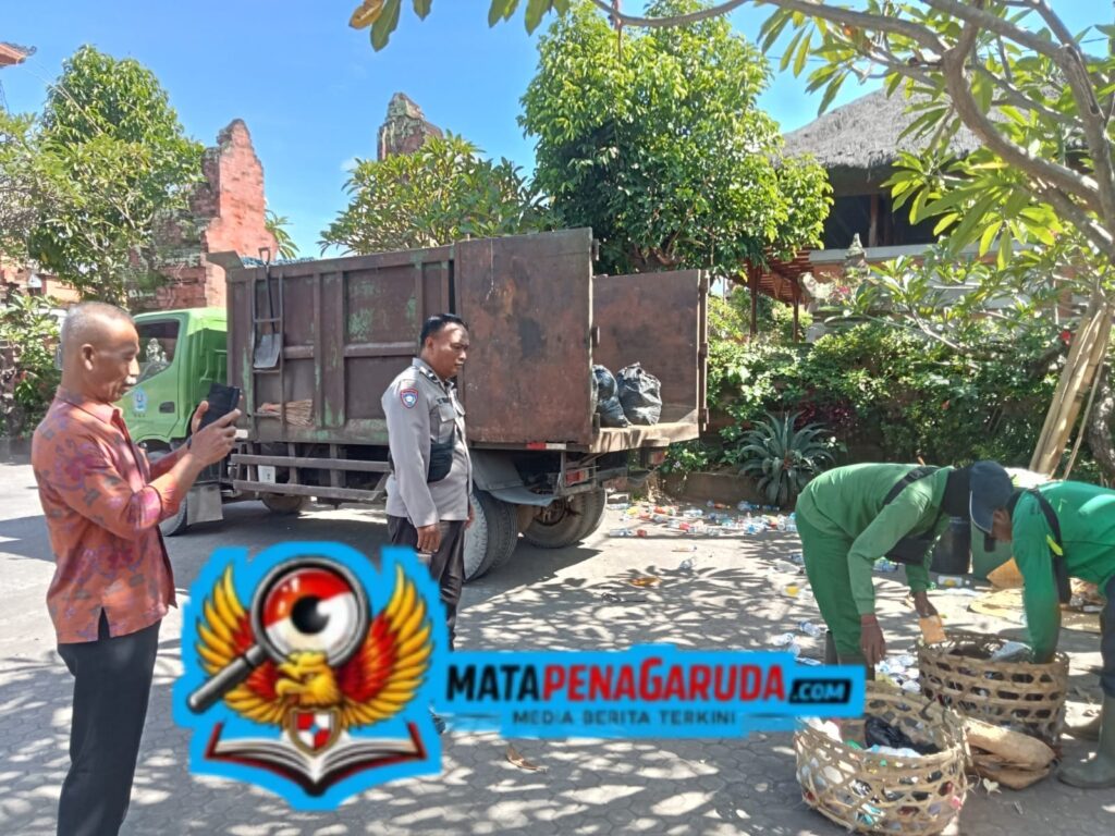 Denpasar,. Dalam rangka menjaga kebersihan lingkungan pasca kegiatan keagamaan, Bhabinkamtibmas Desa Sumerta Kaja Aipda Ketut Srinadi bersama perangkat desa melaksanakan monitoring penanganan sampah di Jaba Pura Desa Adat Sumerta, Jalan Kenyeri, pada Selasa (7/4/2026) pukul 10.00 Wita.