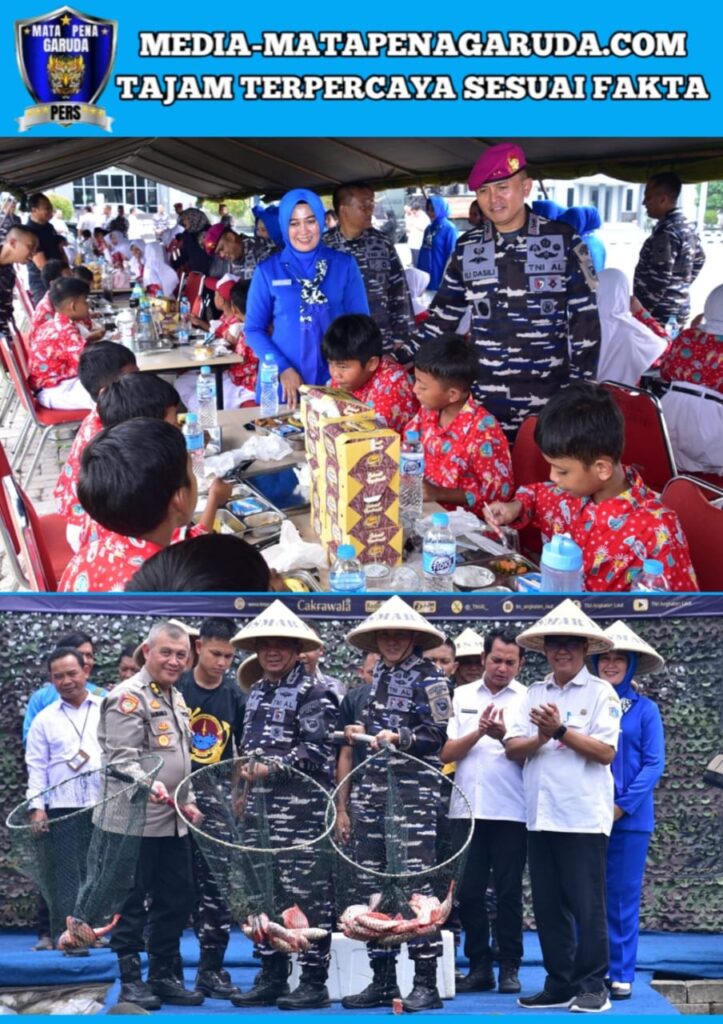 Usai menebar benih ikan, Danpasmar 1 bersama rombongan tamu undangan juga meninjau anak-anak dari SDN 10 Cilincing yang juga turut diundang untuk melaksanakan program Makan Siang Bergizi Gratis yang di siapkan oleh prajurit Pasmar 1.