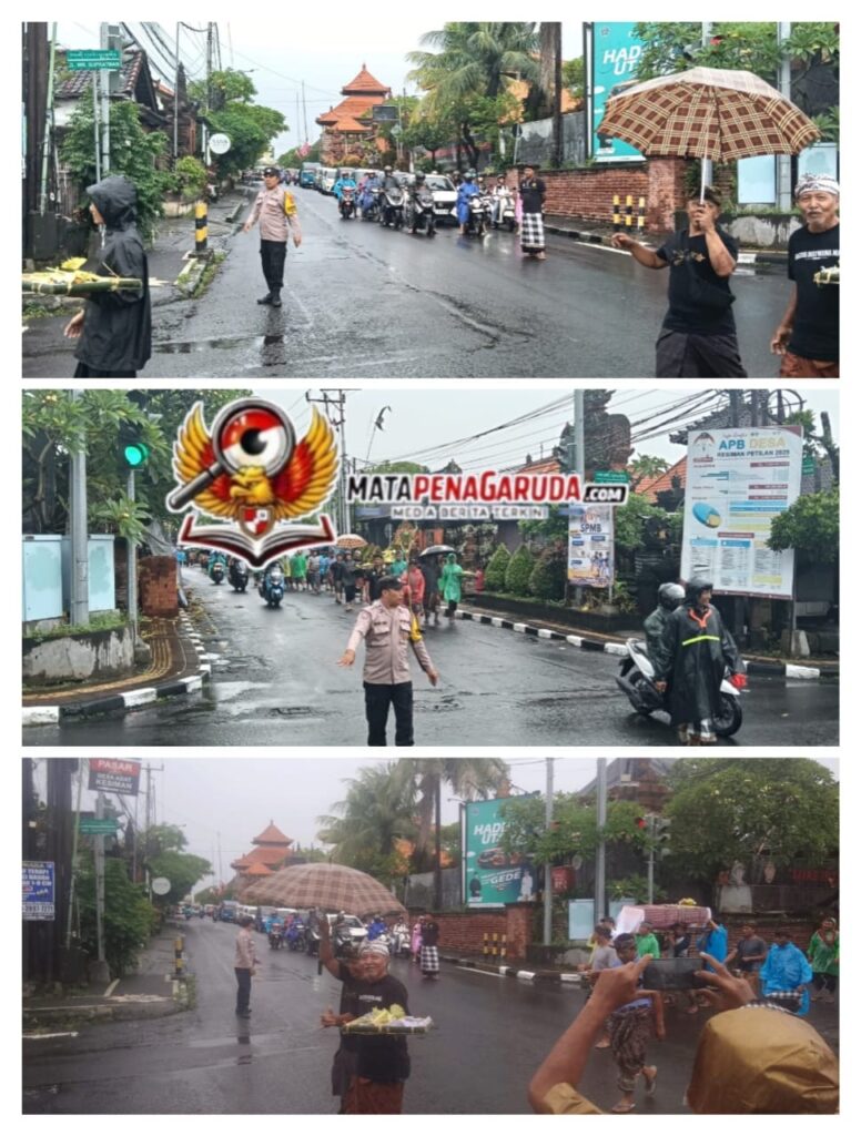 Selama prosesi berlangsung, Bhabinkamtibmas bersama Pecalang melaksanakan pengaturan arus lalu lintas dan pengamanan jalur yang dilalui iring-iringan guna mencegah kemacetan serta memastikan kegiatan berjalan tertib dan lancar. Kehadiran aparat di tengah masyarakat juga merupakan wujud pelayanan Polri dalam mendukung pelaksanaan tradisi dan adat istiadat masyarakat Bali.