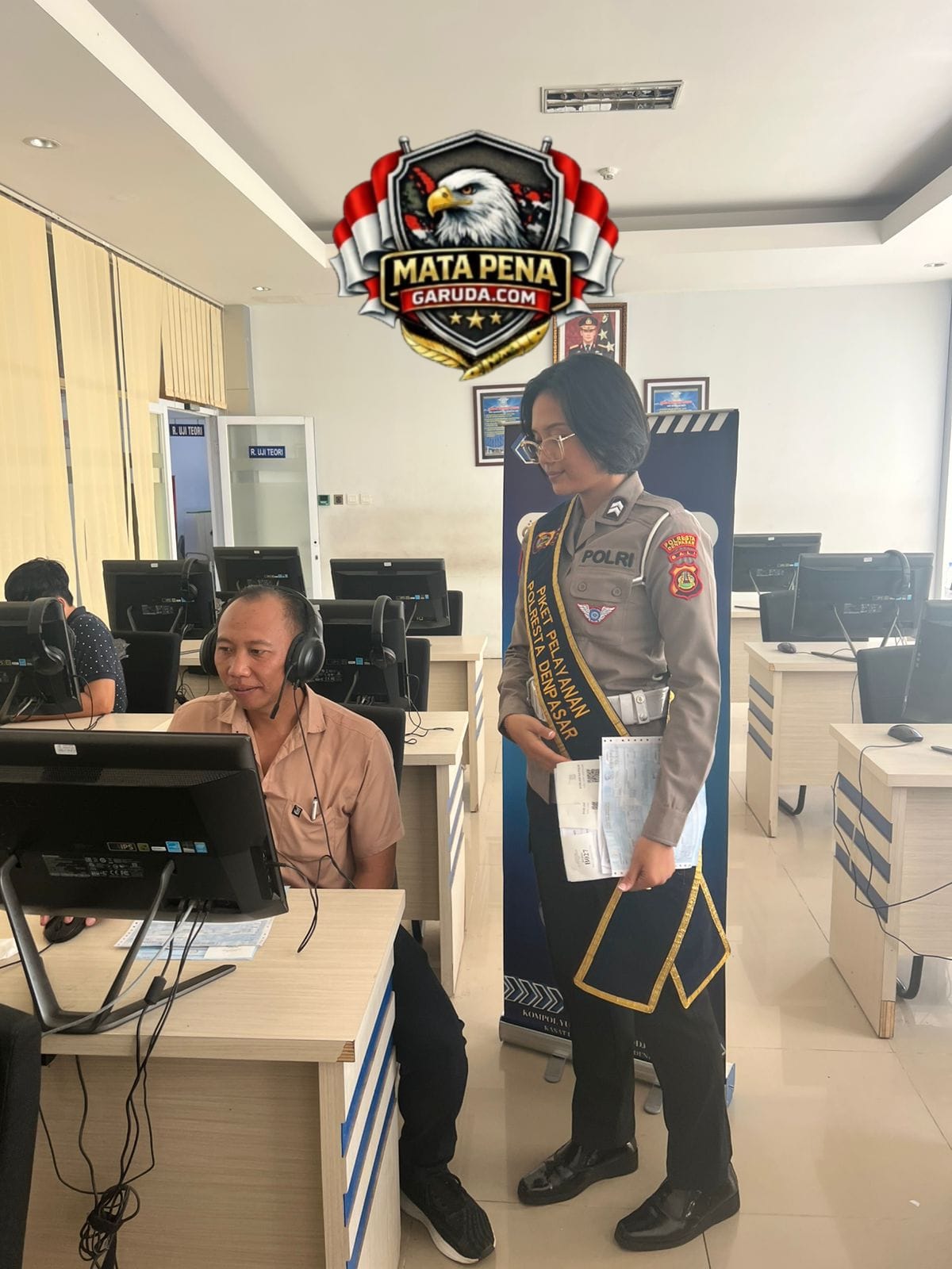 Denpasar,. – Suasana pelayanan di Satpas SIM Polresta Denpasar tampak tertib dan kondusif. Dalam upaya meningkatkan kualitas pelayanan kepada masyarakat, petugas kepolisian hadir secara langsung memberikan pendampingan kepada para pemohon SIM, khususnya saat pelaksanaan ujian teori.