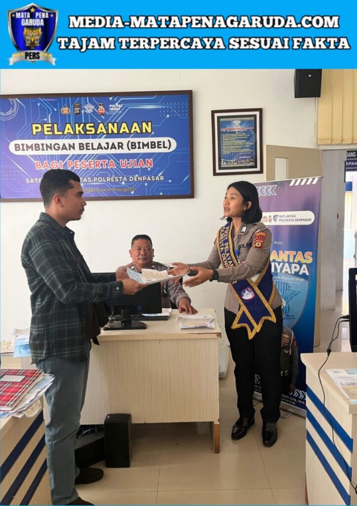 “Polantas Menyapa”, personel Satlantas Polresta Denpasar secara aktif memberikan pendampingan kepada peserta ujian pemohon SIM, menjelaskan prosedur serta tata cara pengisian soal ujian dengan ramah dan penuh kesabaran.