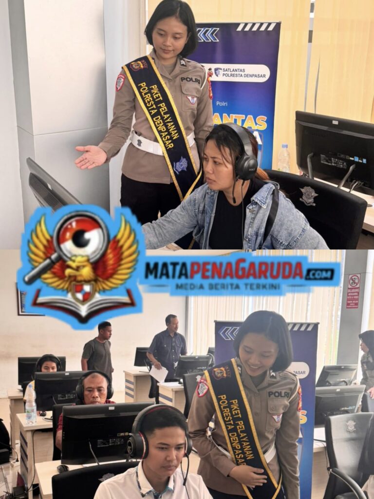 Denpasar – Pelayanan pembuatan dan perpanjangan Surat Izin Mengemudi (SIM) di Satuan Penyelenggara Administrasi SIM (Satpas) Polresta Denpasar terus berjalan dengan optimal dan tertib. Petugas memberikan pendampingan kepada para pemohon SIM yang sedang mengikuti tahapan ujian teori berbasis komputer, sehingga proses pelayanan berlangsung lancar dan nyaman.