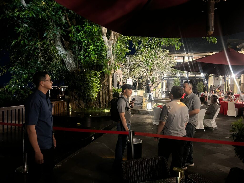 Polda Bali laksanakan pengamanan maksimal dengan menerjunkan ratusan personil gabungan diseputaran lokasi Dinner Jendela Bali Resto GWK.