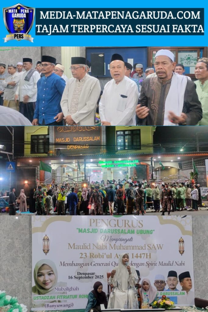 Denpasar –Bali ,Pengurus Masjid Darussalam Ubung Peringati Maulid Nabi Muhammad SAW 23 Robi’ul Awal 1447 H dengan tema Membangun Generasi Qur’ani dengan spirit Maulid Nabi Muhammad yang di hadiri ratusan jamaah bersama tokoh masyarakat serta beberapa pejabat setempat.