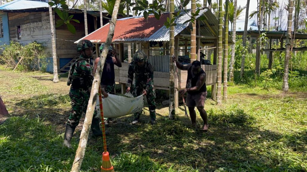 Memberamo Tengah – Karya Bhakti yang dilakukan oleh prajurit TNI bersama masyarakat untuk membantu menyelesaikan kesulitan rakyat, seperti pembersihan lingkungan, serta upaya meningkatkan kesejahteraan dan mempererat hubungan dengan masyarakat Distrik Kobagma Kab. Mamberamo Tengah, provinsi Papua Pegunungan. (02/10/2025).